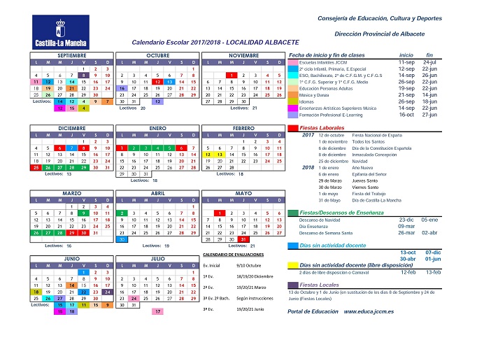 Calendario Escolar de la localidad de Albacete