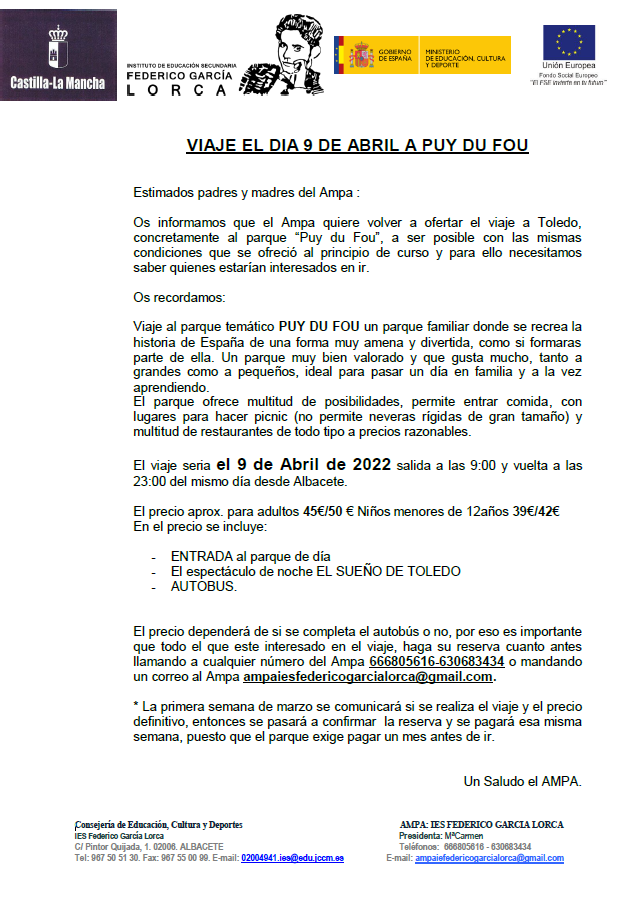Todos los menores de 28 años, matriculados en 3º y 4 de ESO, Bachillerato y Formación Profesional DEBEN PAGAR EL SEGURO ESCOLAR ANTES DE LA MATRÍCULA (Ingresar en la cuenta de Globalcaja nº ES15/3190/0094/51/0010262624, la cantidad de 1'12 €) Y CONSERVAR EL JUSTIFICANTE DE PAGO.