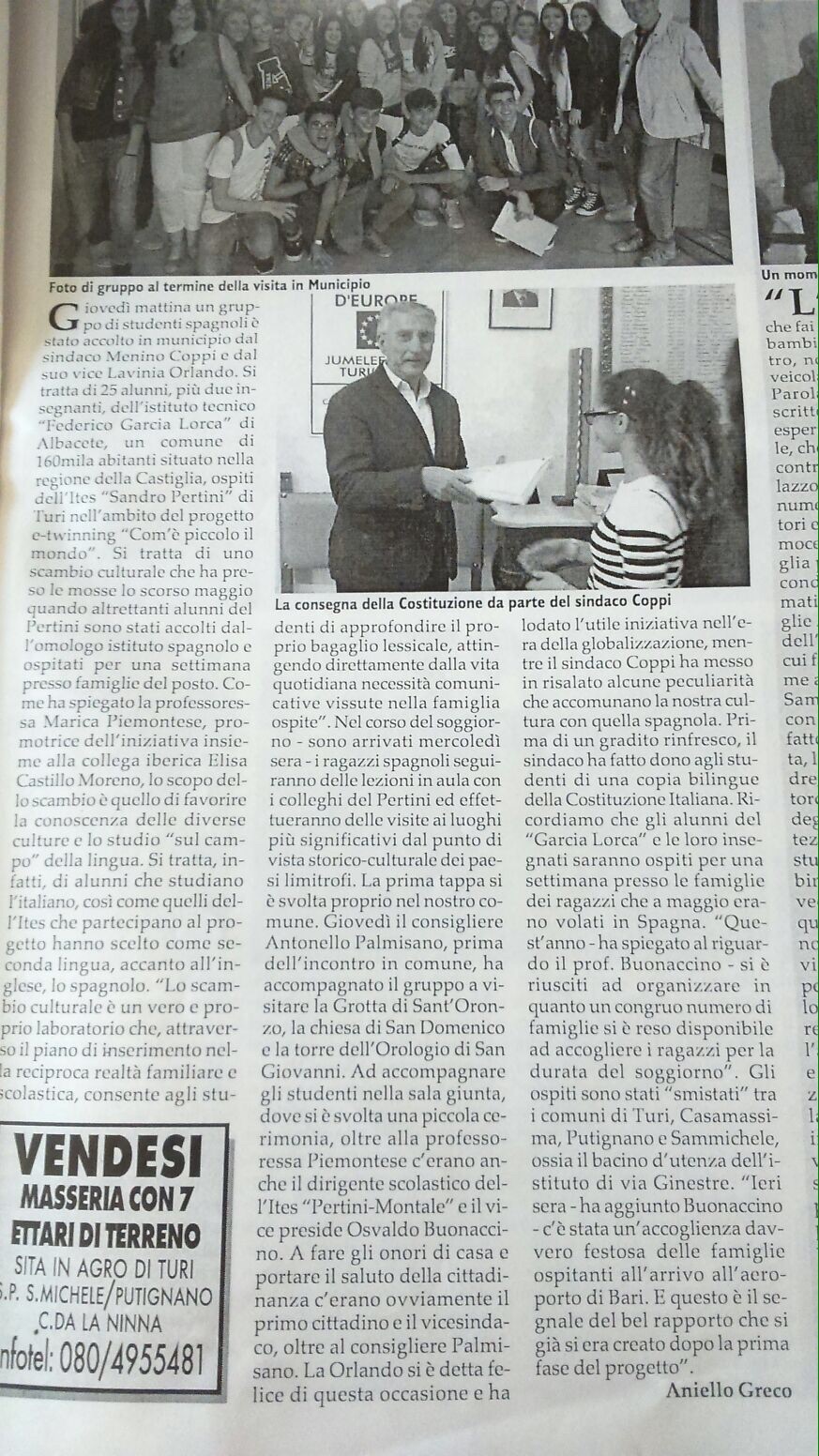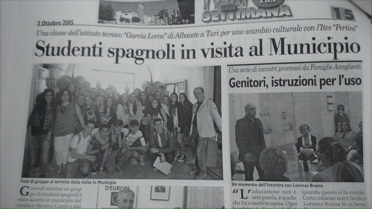 La segunda parte del Intercambio programado como materialización del proyecto e-twinning  "Com'e piccolo il mondo" entre alumnos del IES Federico García Lorca de Albacete y del ITES Pertini-Montale de Turi (Italia) se realizará del 30 de septiembre al 7 de octubre de 2015.