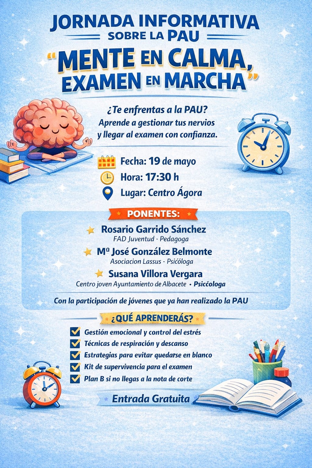 JORNADA INFORMATIVA PAU "MENTE EN CALMA EXAMEN EN MARCHA" Detalles Categoría: Orientación Publicado: Martes, 28 Abril 2026 15:16 Escrito por María José Pinar Visto: 16 Siguiente