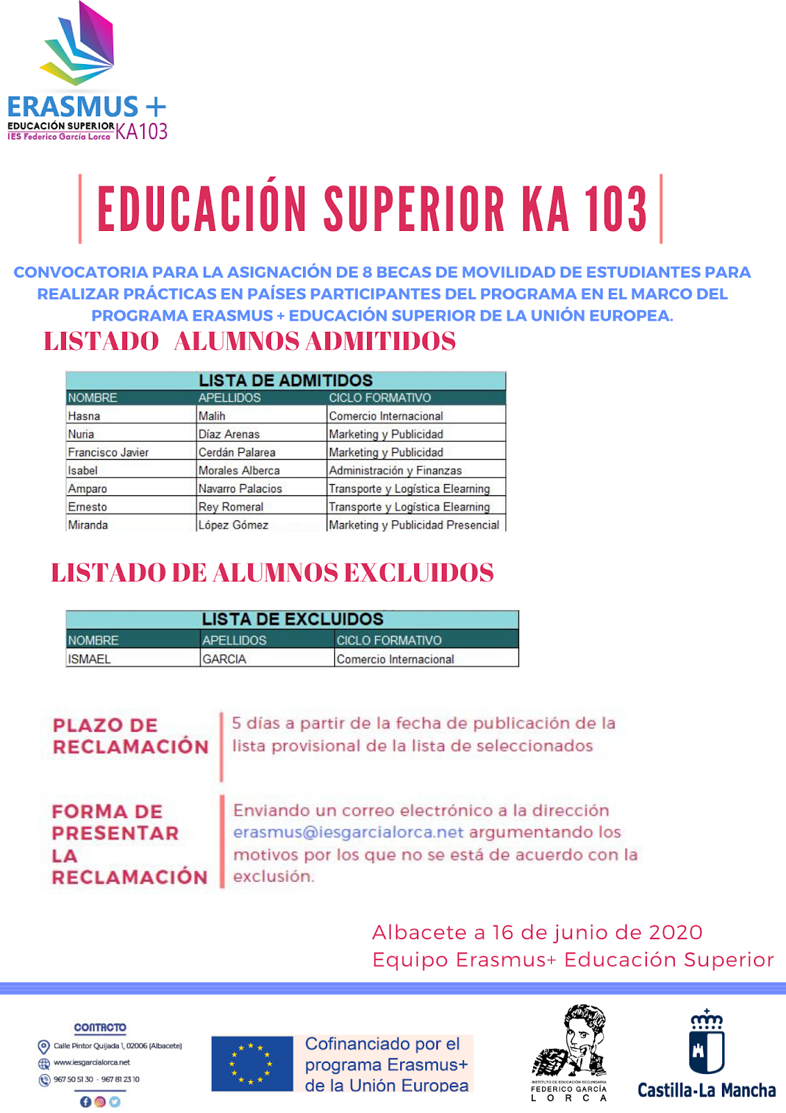 Lamentamos que los alumnos que finalizan este curso su estancia en el IES no tengan la despedida que merecen, y les deseamos éxitos en las nuevas experiencias que iniciarán en septiembre.